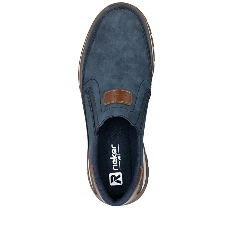Rieker hyttesko herre i blå. Stilfulde og komfortable sko i et praktisk design, hvor pasform og komfort er i fokus. Elastikken ved åbningen gør at du nemt kan komme i skoen. Indvendigt finder du en blød udtagelig indersål, som giver behagelig komfort hele dagen. Med ekstra bredde (H) får du god rummelighed til foden, så skoen føles behagelig at bruge. Den mønstrede ydersål giver øget støtte og skridsikkerhed.