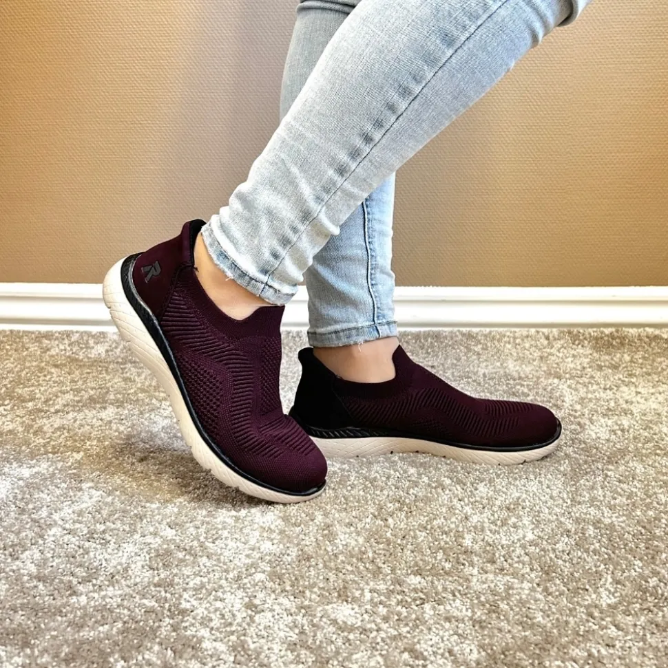 Rieker Ready 2 Go sko til dame i bordeaux. Denne sko er skabt til dig, der ønsker en praktisk løsning med høj komfort. Med Ready 2 Go teknologien og en fast hælkappe kan du tage skoen på uden brug af hænder. Rieker Antistress gør modellen let og fleksibel, så den føles behagelig, selv efter mange timers brug. Indvendigt finder du en memosoft-sål, som former sig efter foden og giver støtte hele dagen. Ydersålen er udstyret med et mønster, der både øger stødabsorbering og skridsikkerhed