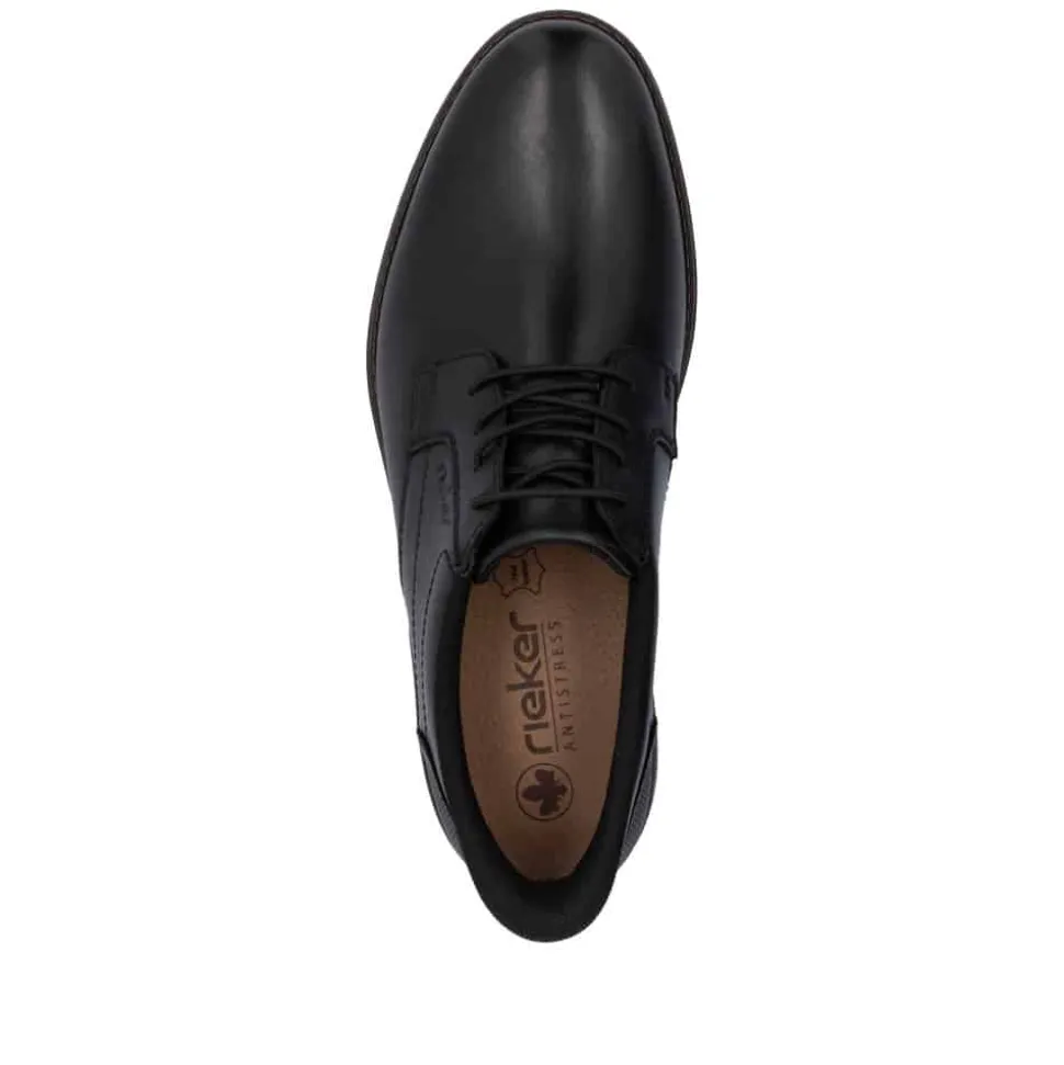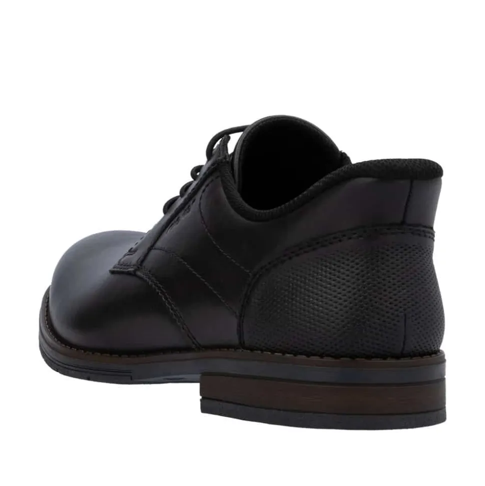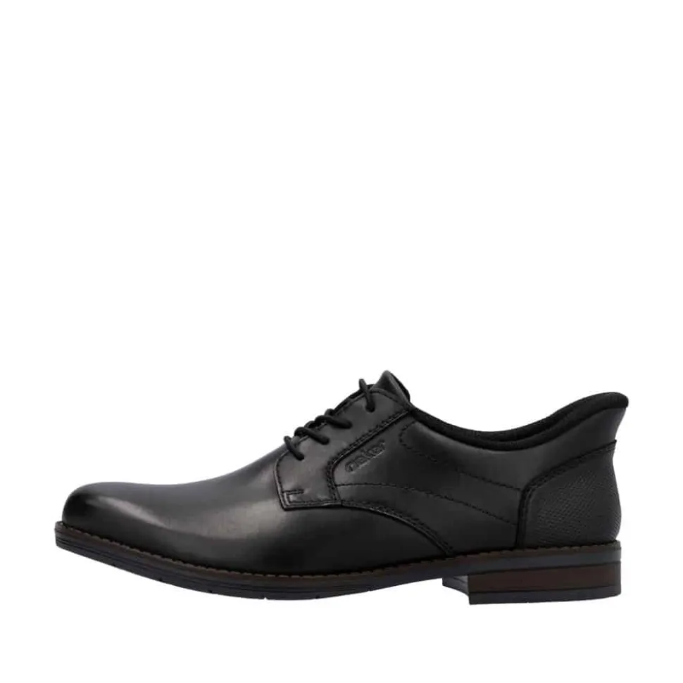 Rieker Ready 2 sko til herre i sort. Ready 2 GO-funktionen gør det nemt og hurtigt at glide i disse sorte Rieker sko uden brug af hænder, mens den faste hælkappe sikrer, at skoen holder sin form. Fremstillet i glat læder kombinerer skoene praktisk design med et elegant look. Den klassiske konstruktion gør skoen både robust og fleksibel for en perfekt pasform. De elastiske indsatser gør det let at tage skoen af og på, mens de moderne dekorative syninger tilfører et stilfuldt touch. Den skridsikre TR-sål sikrer et stabilt fodfæste, og den bløde indersål giver optimal komfort hele dagen. Ideel til dig, der ønsker at kombinere funktionalitet og elegance i én sko!