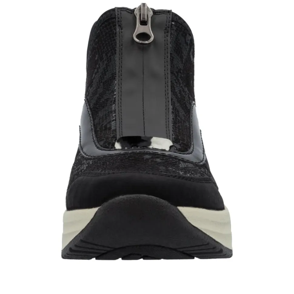 Rieker Ready 2 Go støvle til dame i sort. Denne støvle kombinerer stil og komfort på bedste vis. Med Ready 2 Go-teknologi og en fast hælkappe kan du tage støvlen på uden at brug af hænder. Foran finder du en funktionel lynlås, som både er praktisk og tilføjer en smart detalje. Indvendigt bliver du mødt af en blød udtagelig sål og ekstra bredde (H), der sikrer en rummelig pasform og høj komfort hele dagen. Den mønstrede ydersål giver øget stødabsorbering og skridsikkerhed.