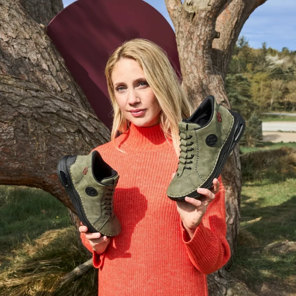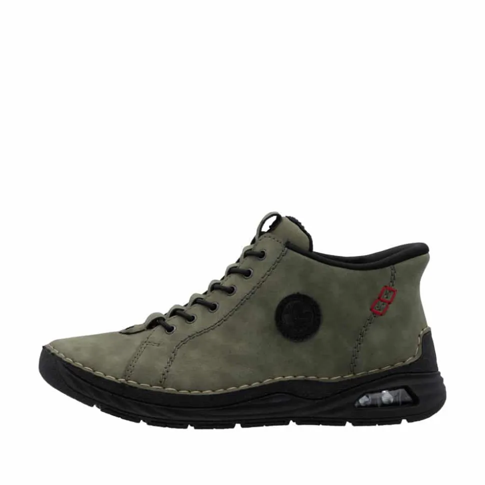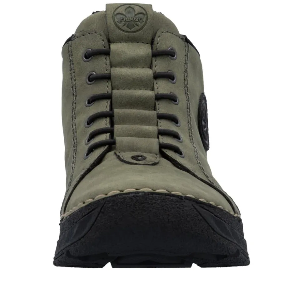 Rieker Ready 2 Go støvle til dame i army grøn. Smart og funktionel støvle i army grøn, der er ideel til hverdagen. Den er designet med Ready 2 Go-teknologi og en fast hælkappe, så du nemt og hurtigt kan tage den på uden hænder. Den elastiske front tilpasser sig foden og giver ekstra komfort. Indvendigt er støvlen let foret og har en udtagelig sål, mens den mønstrede ydersål sørger for øget skridsikkerhed og stødabsorbering.