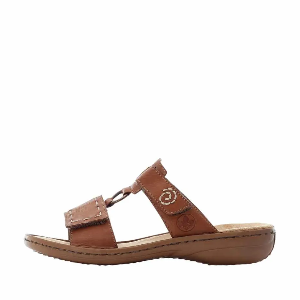 Rieker sandal til dame i brun. Oplev stil og komfort med denne smukke sandal. De fine detaljer foran og den diskrete 3 cm hæl tilføjer et elegant touch til dit look. Sandalen er designet med en blød og let sål, der sikrer, at du går komfortabelt hele dagen. Den praktiske velcrolukning gør det let at justere pasformen, så du kan få den perfekte pasform til din fod. En sandal, der kombinerer funktionalitet og elegance.