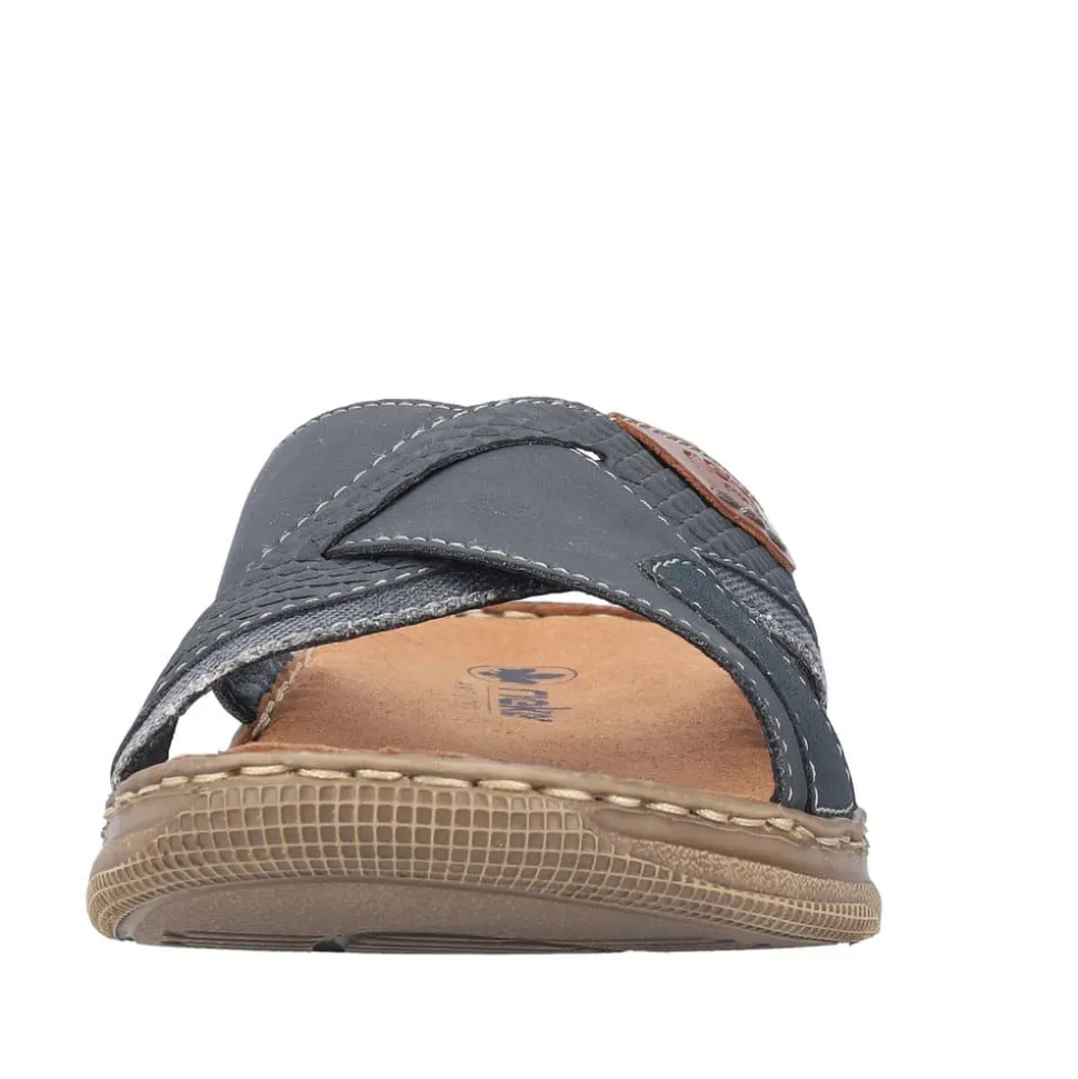 Rieker sandal til herre i blå. Få mest ud af sommeren! Disse Rieker herresandaler er det ultimative valg med deres moderne design og enestående komfort. Med sandaler uden lukning kan de tages på med lethed på ingen tid. Den åbne design og den lette, fleksible sål giver konstant velvære, mens den ekstra bløde indersål tilføjer en luksuriøs følelse. Desuden er sandalen forsynet med et let, åndbart for, der effektivt absorberer fugt og holder fødderne friske hele dagen. Så tag disse sandaler på og kom ud og nyd sommeren!