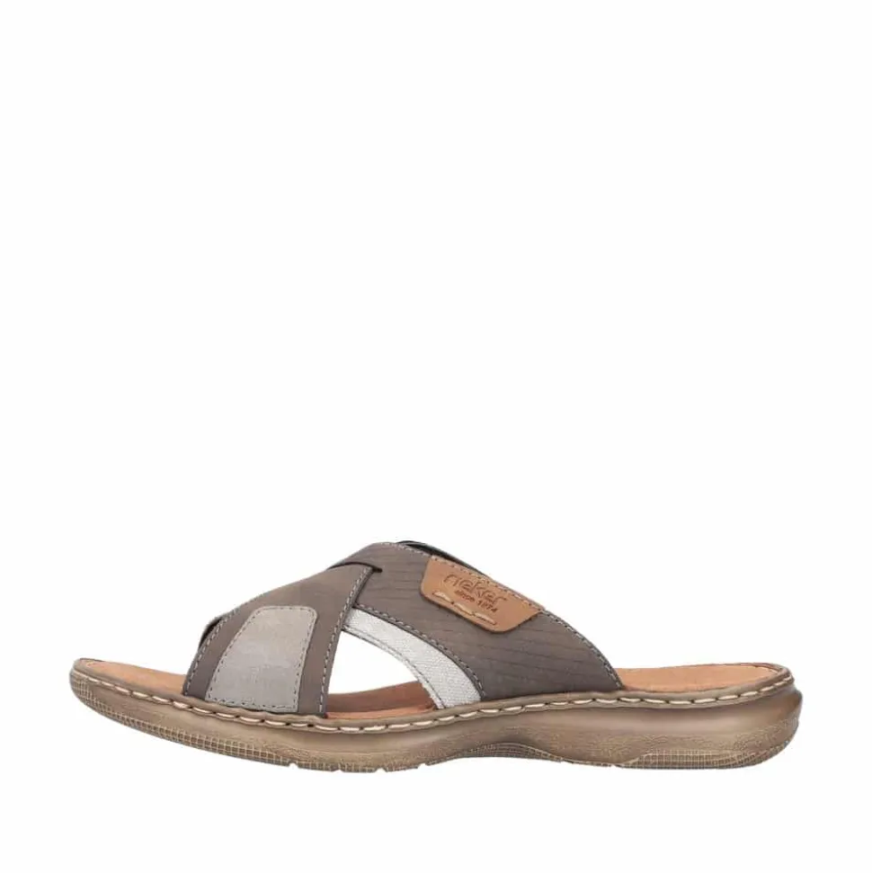 Rieker sandal til herre i brun. Disse brune Rieker sandaler til mænd er det perfekte valg til en afslappet dag. Uden nogen form for lukning er de nemme at trække på i en fart. Den åbne sandal og den fleksible, ultralette sål sikrer kontinuerlig komfort og stødabsorbering. En ekstra fordel er den bløde indersål, der tilføjer ekstra behag. Med komfortbredden G 1/2 er der rigeligt med plads til fødderne, så de forbliver behagelige selv efter lang tids brug. Foret med åndbart, fugtabsorberende materiale giver disse sandaler en følelse af ren luksus ved hver eneste skridt.