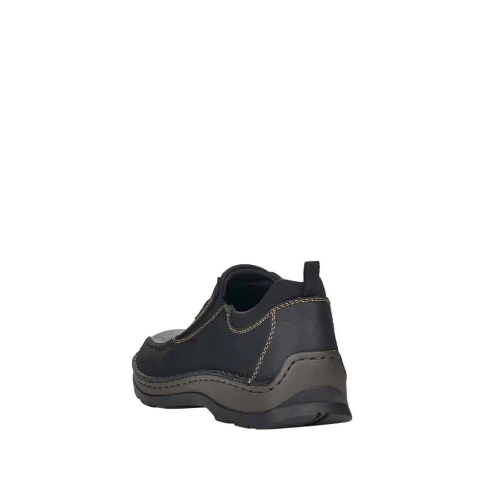 Rieker sko til herre i sort. Overdelen er fremstillet af behageligt skind, der omfavner din fod med elegance. Indvendigt er skoen foret med neoprenstof, der er både blødt og strækbart og strækker sig langs kanten for en ekstra dimension af komfort. Ydersålen er designet til at være fleksibel, blød og let, mens den stødabsorberende sål arbejder for at forøge komforten for dine fødder, så du kan nyde hvert skridt med lethed. Med ekstra vidde H-H½, så skoen er rummelig til ekstra brede fødder.