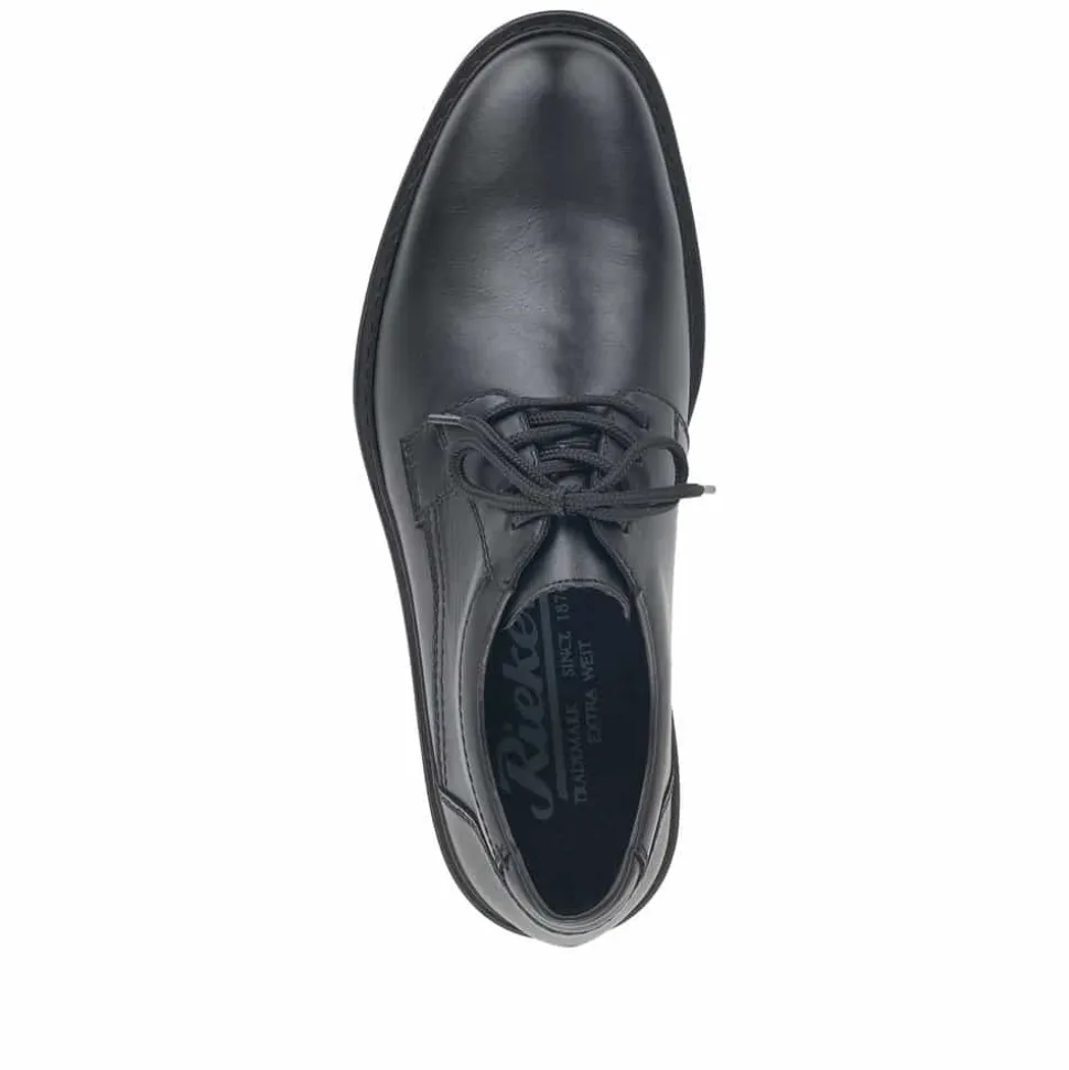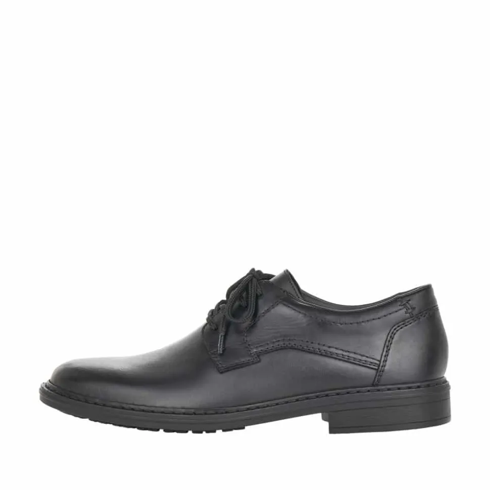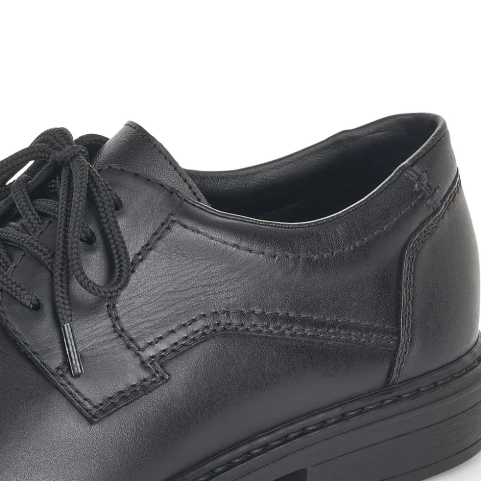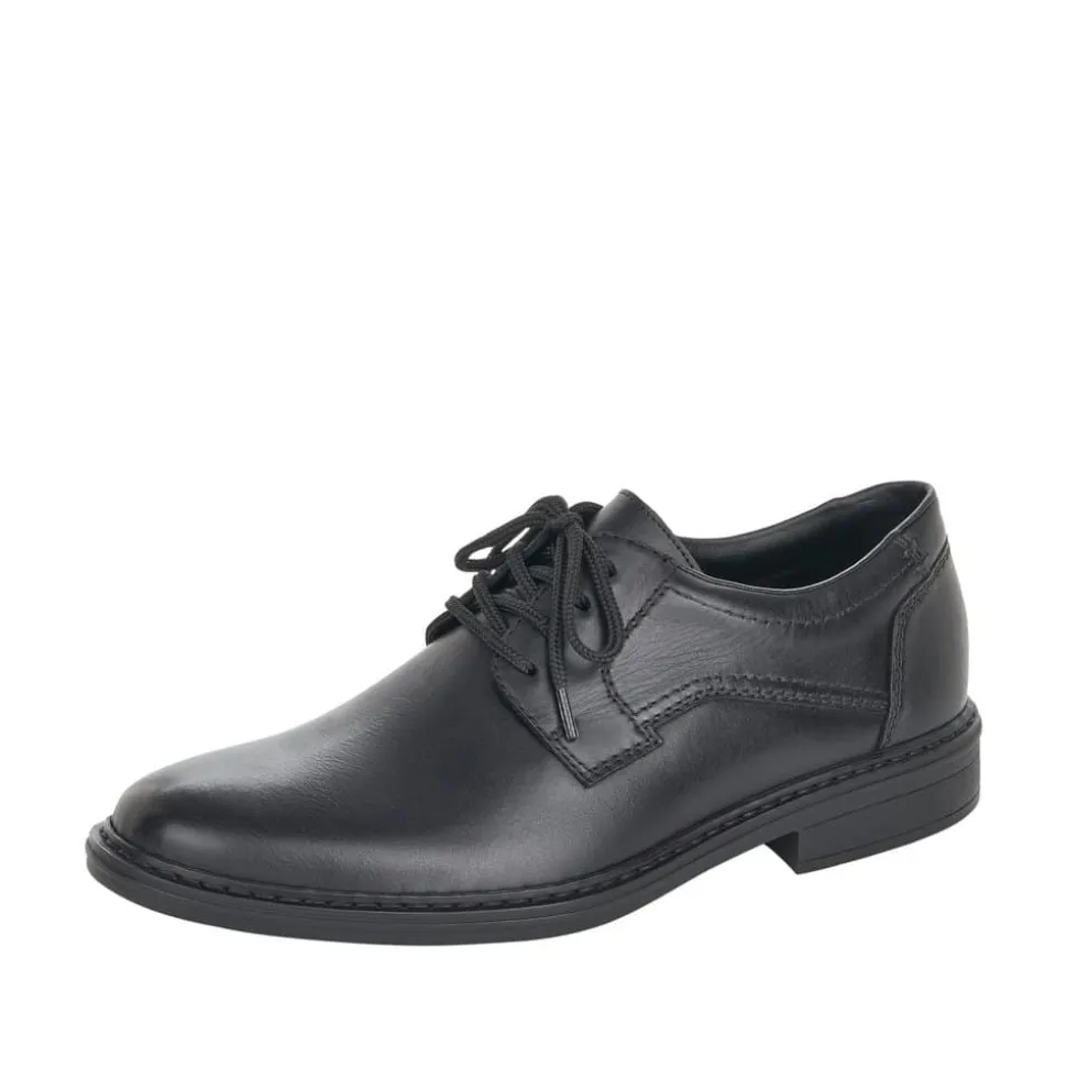 Rieker sko i sort til herre. Klassisk sko med en blød skindoverdel. Skoen er udstyret med snørebånd foran så du nemt kan justerer den efter din fod. Modellen har en lille hæl som giver den et sofistikeret look. Skoen har ekstra vidde og er super let, hvilket er med til at øge komforten. Sidst men ikke mindst har skoen en lækker stødabsorberende sål samt en sål med gode mønstrer under, der bidrager til en øget skridsikkerhed.