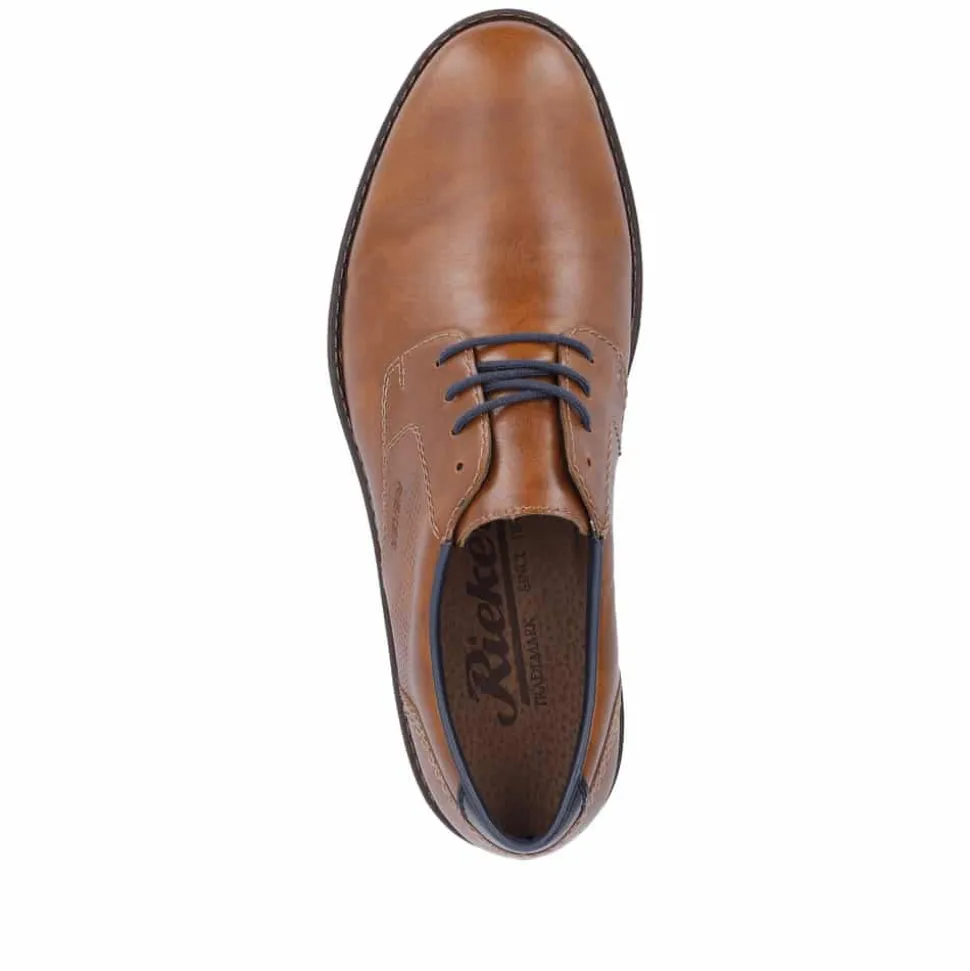 Rieker sko i cognac/brun til herre. Ekstra plads til dine fødder! Disse dejlige nougatbrune snøresko fra Rieker vil du næsten ikke kunne undvære. Snørebåndene sikrer samtidig, at skoen altid sidder perfekt på dine fødder. Med den holdbare sål kan du tage hvert skridt med fuld tillid. Den bløde og åndbare læderindlægssål giver både optimal komfort og intelligent funktionalitet. Modellen er skabt med en komfortabel bredde i størrelse G 1/2. Så er der intet, der kan holde dig tilbage fra lange gåture!