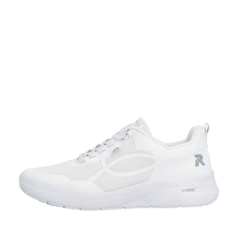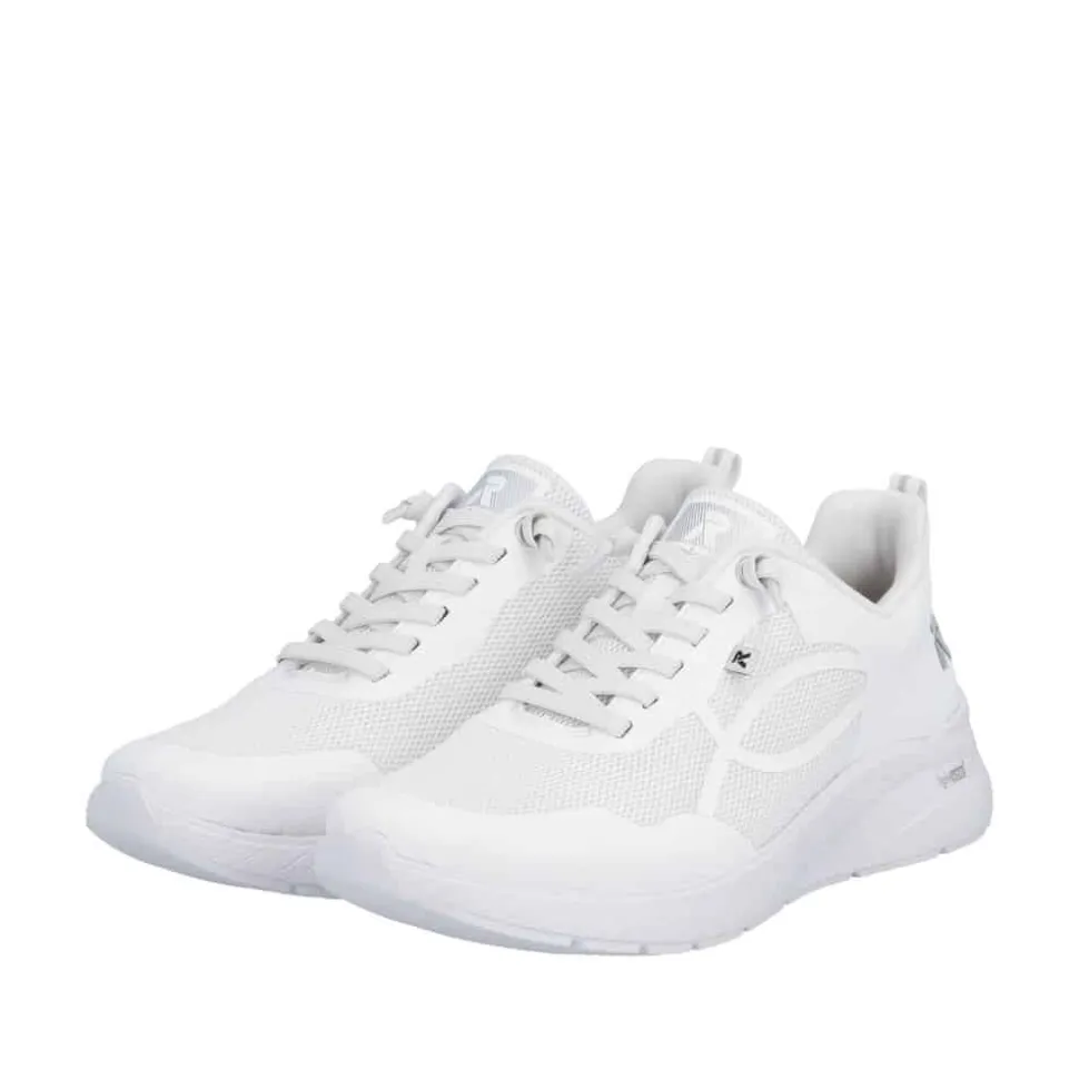 Rieker sneakers til dame i hvid. Let og fleksibel sneakers i en flot hvid farve med enkle detaljer der giver et smart udtryk. Skoen har snørebånd foran som gør det nemt at komme i og af samt justere pasformen efter foden. Indvendigt mødes du af en blød og udtagelig Rieker-Soft sål der sikrer optimal komfort hele dagen. Skoen er udstyret med en Rieker-Light+ sål som giver en let følelse og effektiv stødabsorbering, hvilket gør den behagelig også på lange dage.