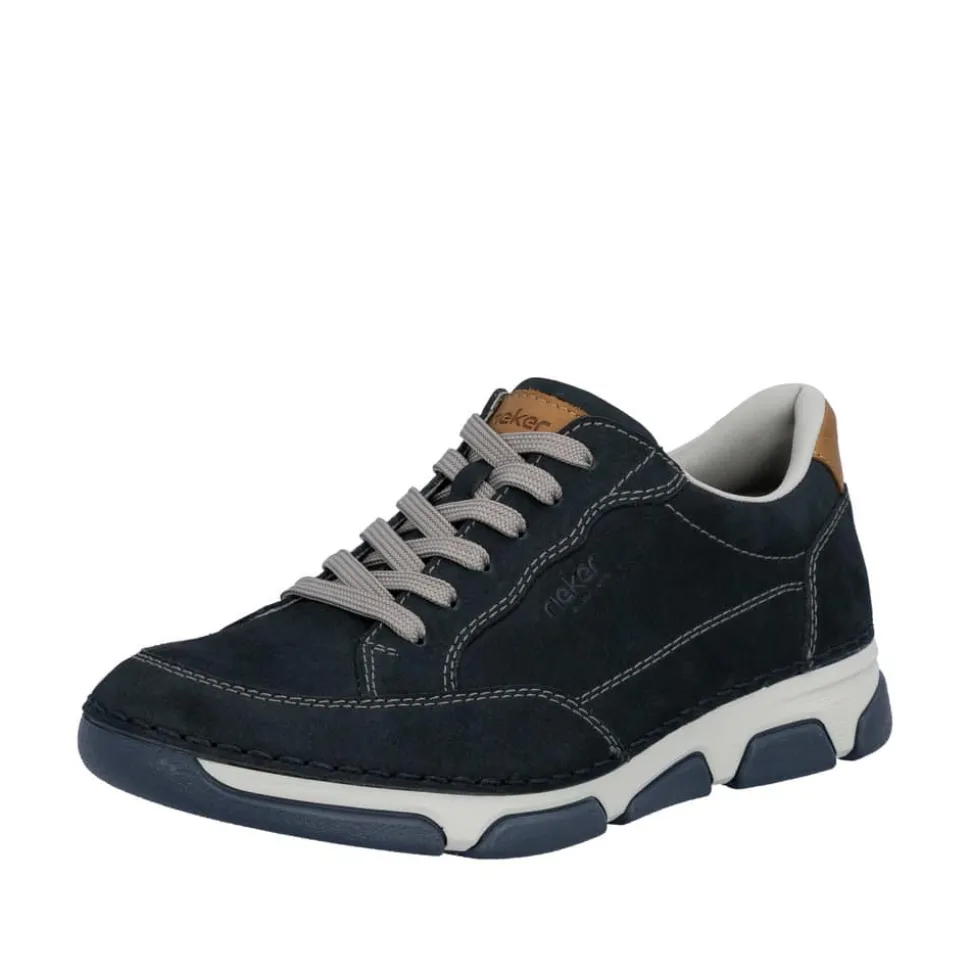 Rieker sneakers til herre i mørkeblå. Flotte og elegante sko med skindoverdel og fine detaljer, der giver et stilfuldt udtryk til både hverdag og pænere brug. Skoen har både snørebånd og en funktionel lynlås, som gør det let at komme i og af og samtidig giver mulighed for at justere pasformen. Indvendigt er skoen udstyret med en blød og udtagelig sål samt ekstra bredde (H), der sikrer høj komfort hele dagen. Ydersålen er designet med et mønster, som giver øget støtte og skridsikkerhed i hvert skridt.