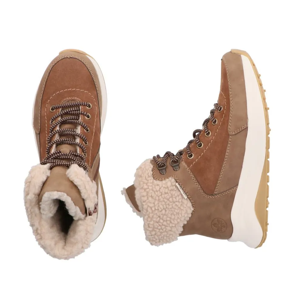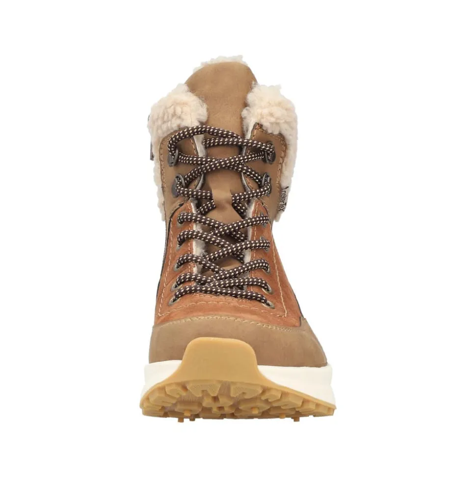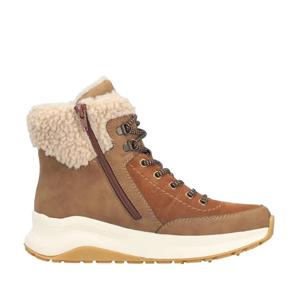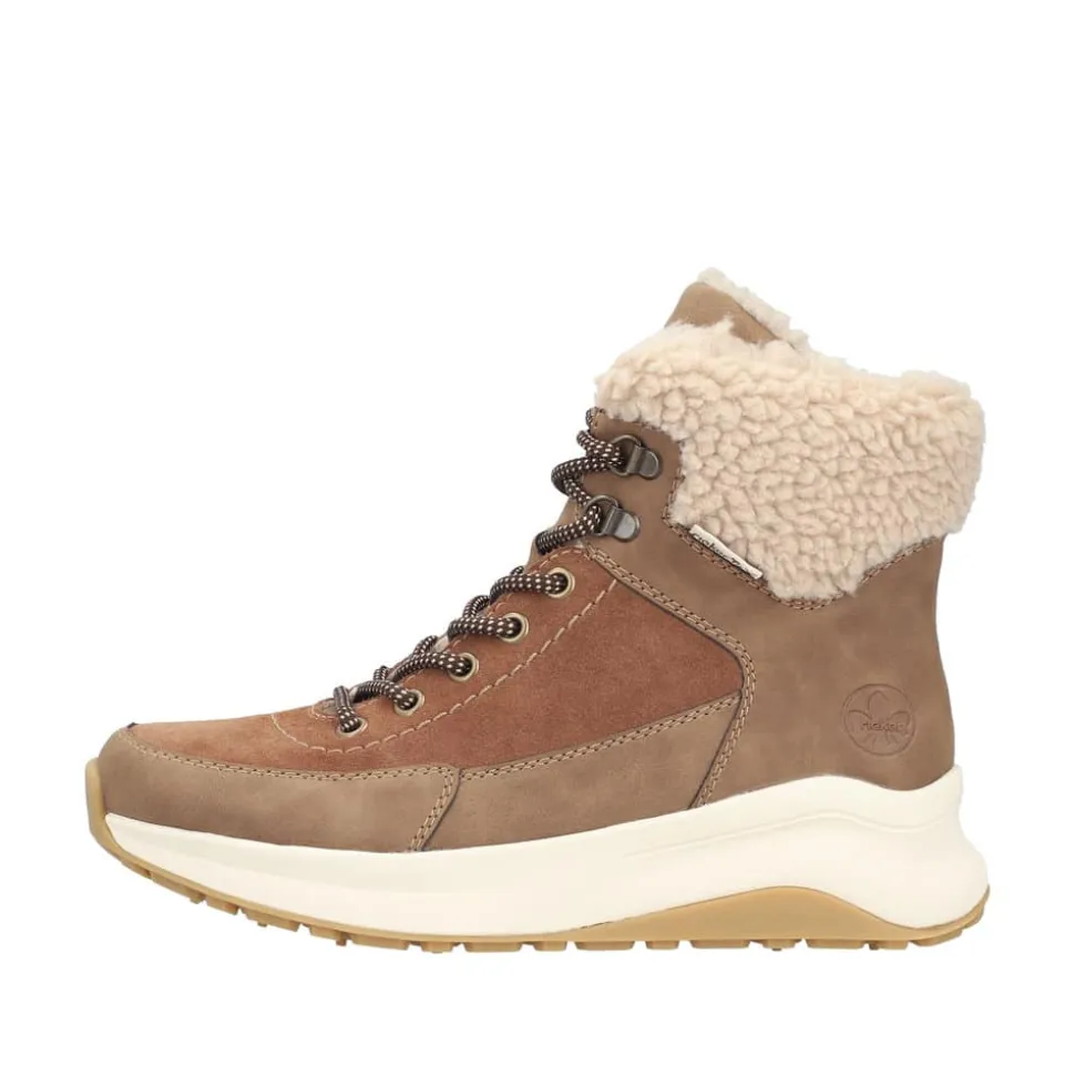 Rieker støvle til dame i brun. Moderne vinterstøvle i en smuk brun farve med smarte detaljer, der tilfører et stilfuldt udtryk. Foran har støvlen snørebånd, så du kan justere pasformen, mens lynlåsen på indersiden gør den nem at tage af og på. Indvendigt sørger den varme foring og den bløde, udtagelige indersål for høj komfort gennem hele dagen. Takket være Rieker-Tex er støvlen kraftigt vandafvisende, og den chunky ydersål med stødabsorbering og et mønster giver øget skridsikkerhed.