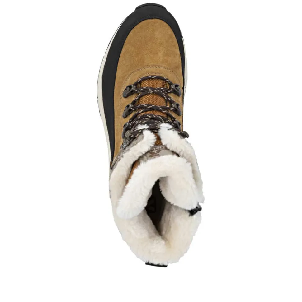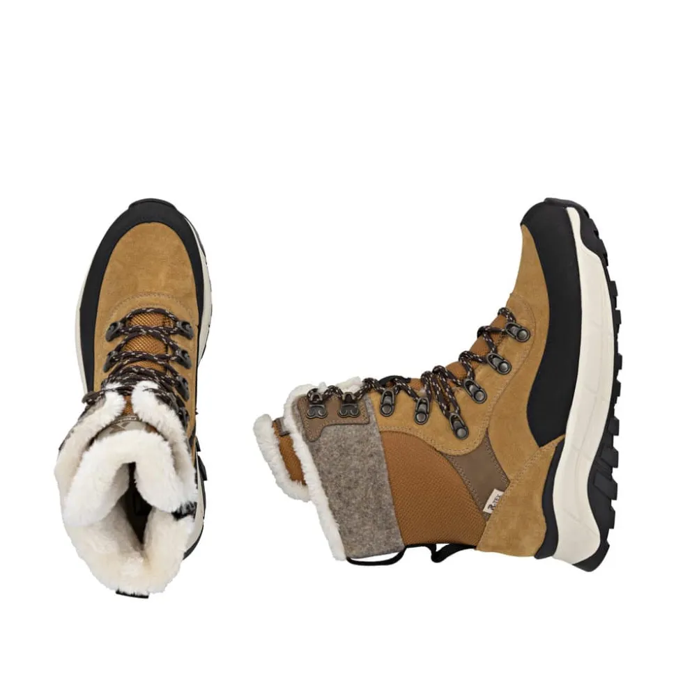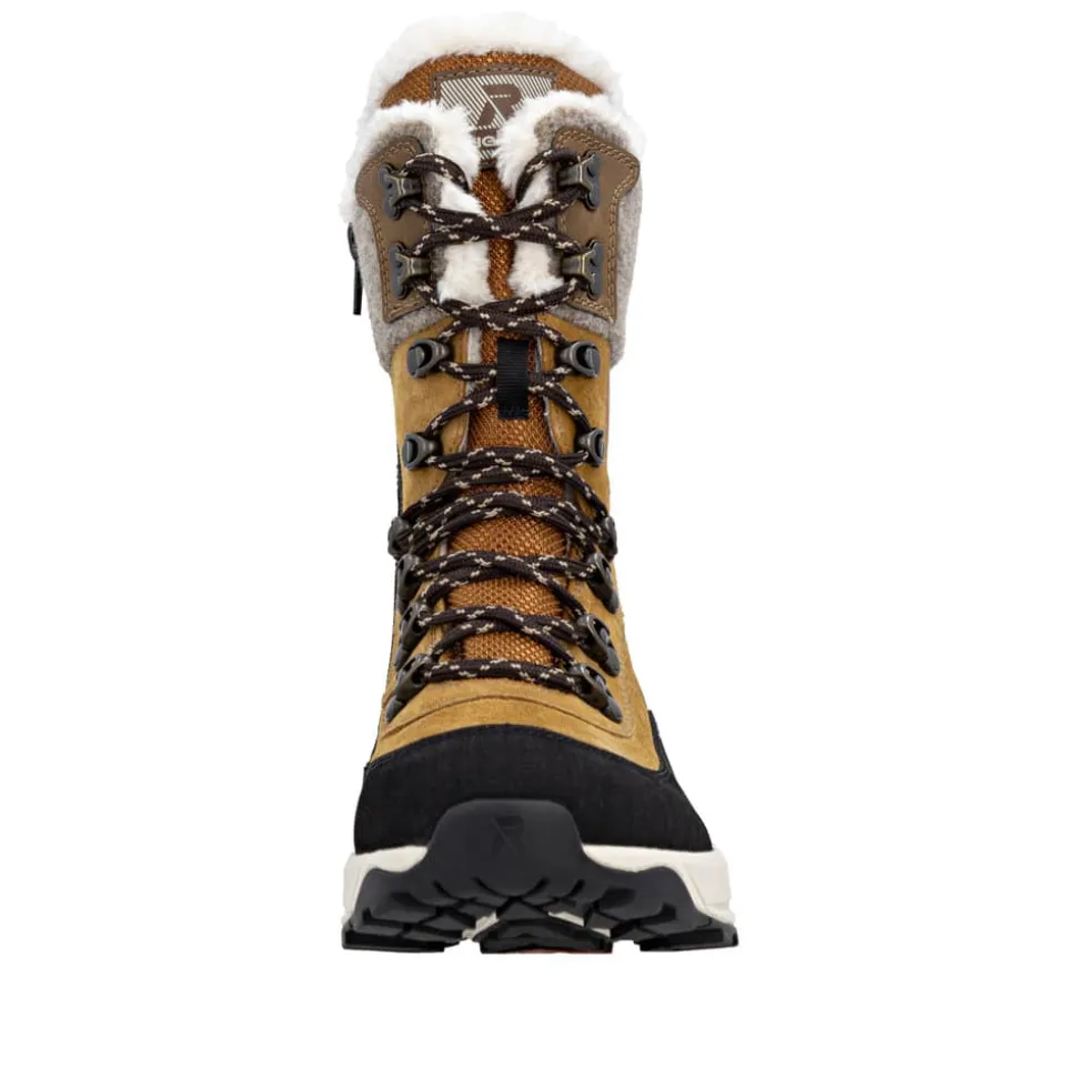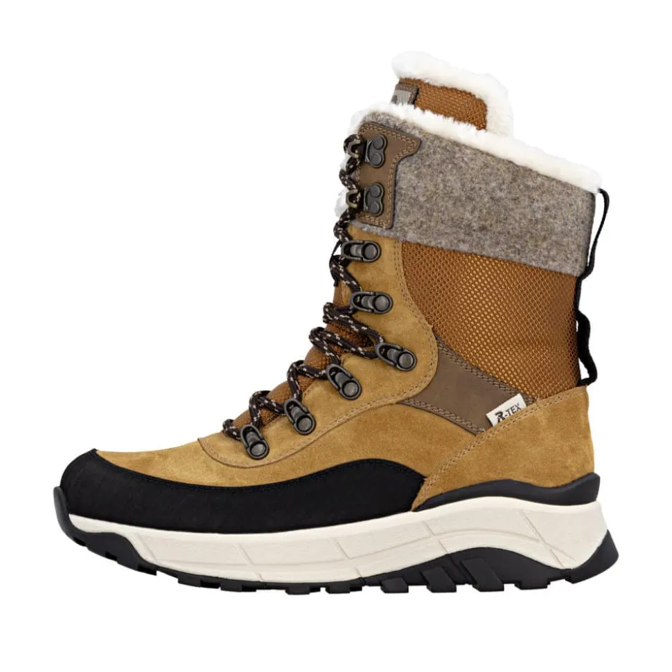 Rieker Revolution vinterstøvle til dame i brun. Disse Rieker snørestøvler til kvinder i en elegant brun farve kombinerer design og funktion, så du er klar til de kolde dage. Den praktiske kombination af snørebånd og lynlås sikrer en perfekt pasform og støtte. Med den lette og fleksible sål kan du nyde maksimal komfort hele dagen. Det vandafvisende ydermateriale med TEX-membran beskytter effektivt mod regn og sne, mens den varme termiske indersål holder fødderne dejligt lune. Den specialudviklede Fiber-Grip sål giver ekstra stabilitet, og det bløde, uldforede indre gør støvlerne til dine nye favoritter, uanset hvor vinterens eventyr fører dig hen.