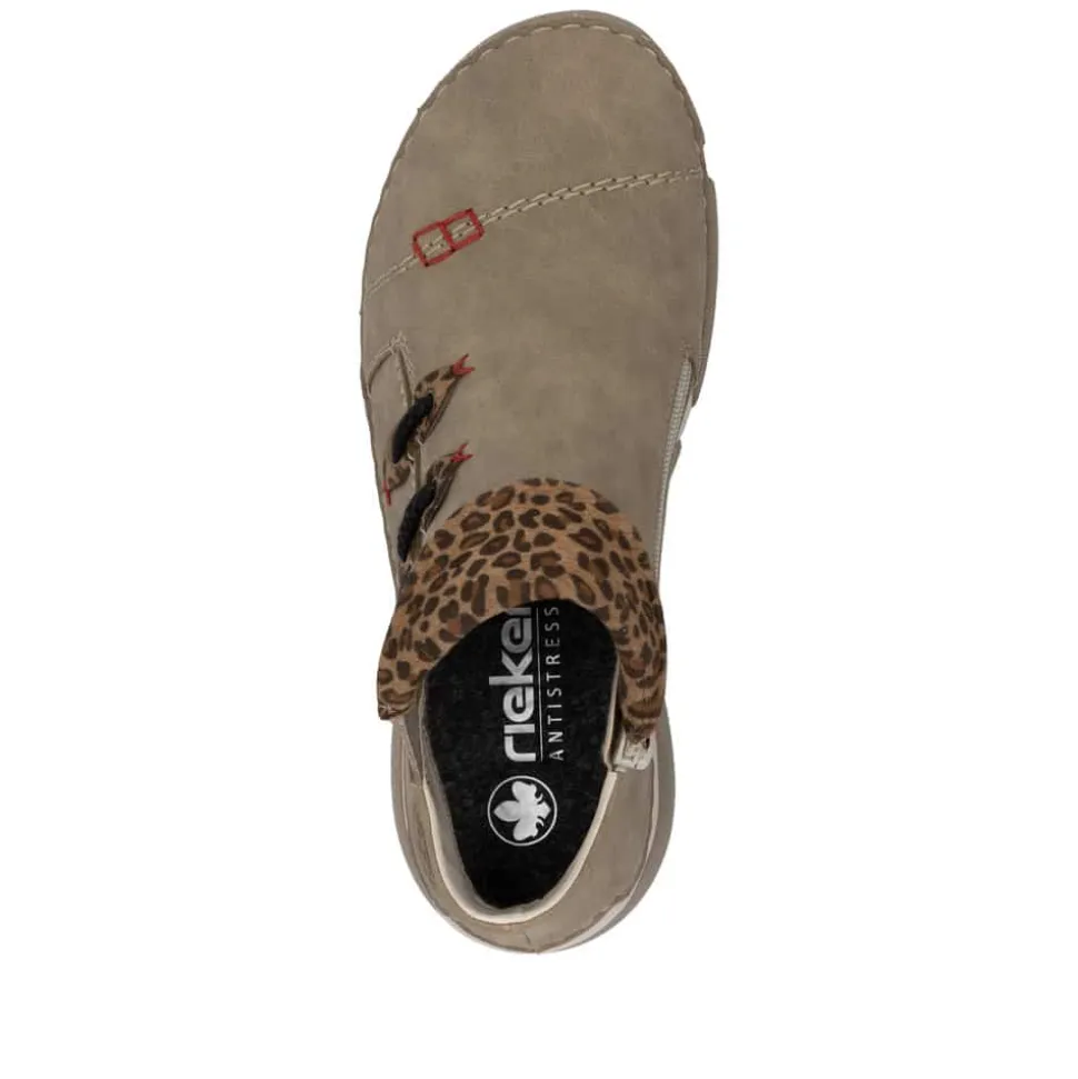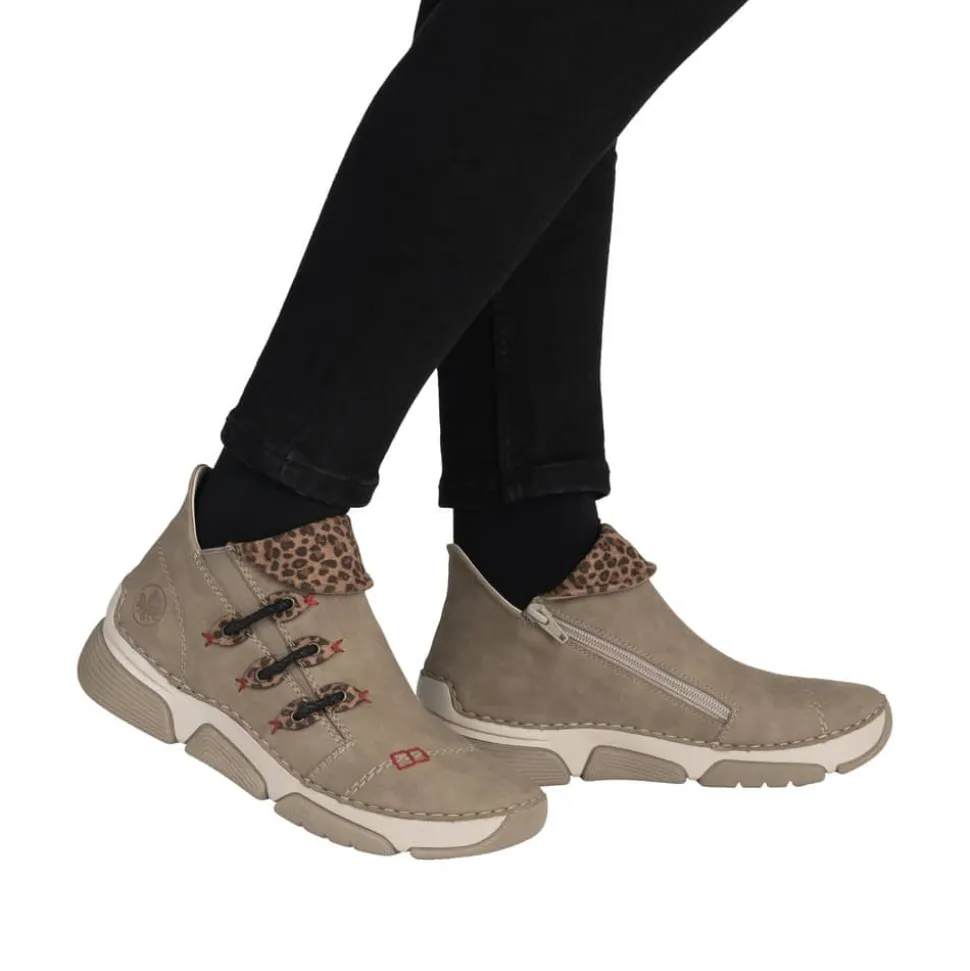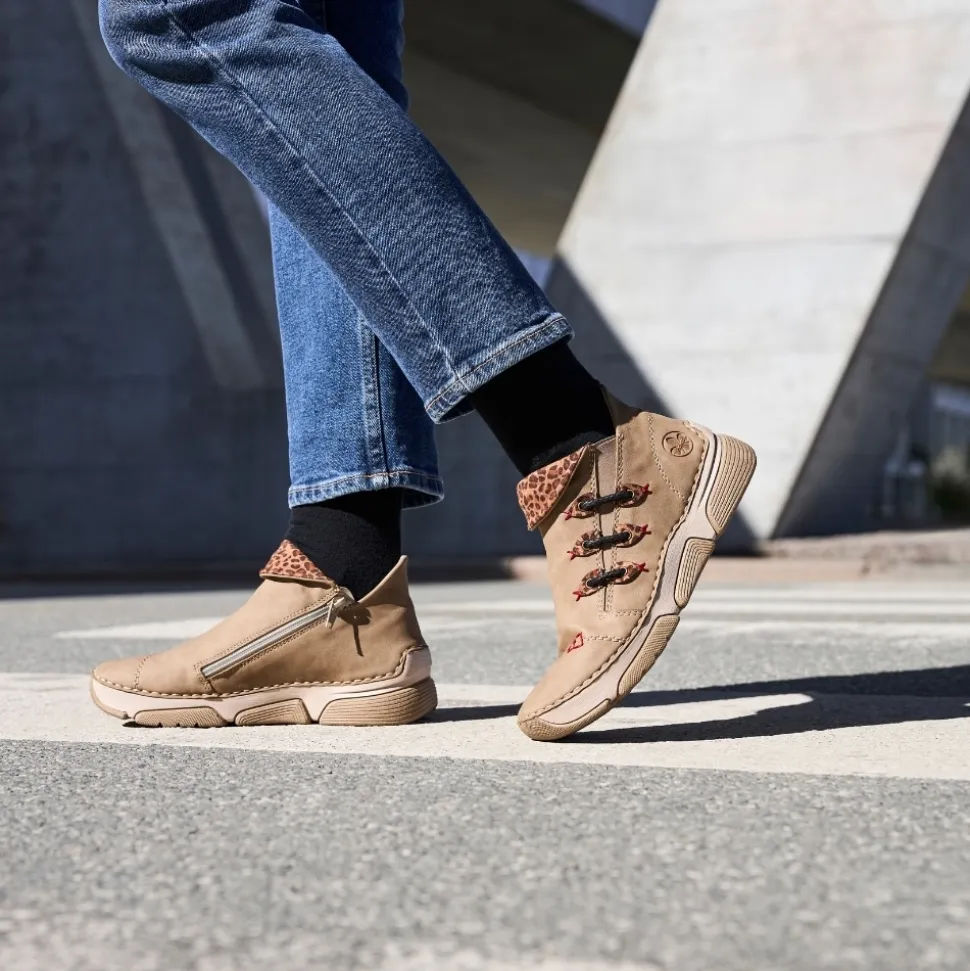 Rieker støvle til dame i beige. Denne støvle fra Rieker er et ideelt valg til hverdagen. Lynlåsen på indersiden og elastikken på ydersiden gør det nemt at tage støvlen af og på. Indvendigt møder du en let foring og en blød sål, som sikrer god komfort hele dagen. Med Rieker Antistress er støvlen både let og fleksibel, og den mønstrede ydersål giver øget stødabsorbering og skridsikkerhed