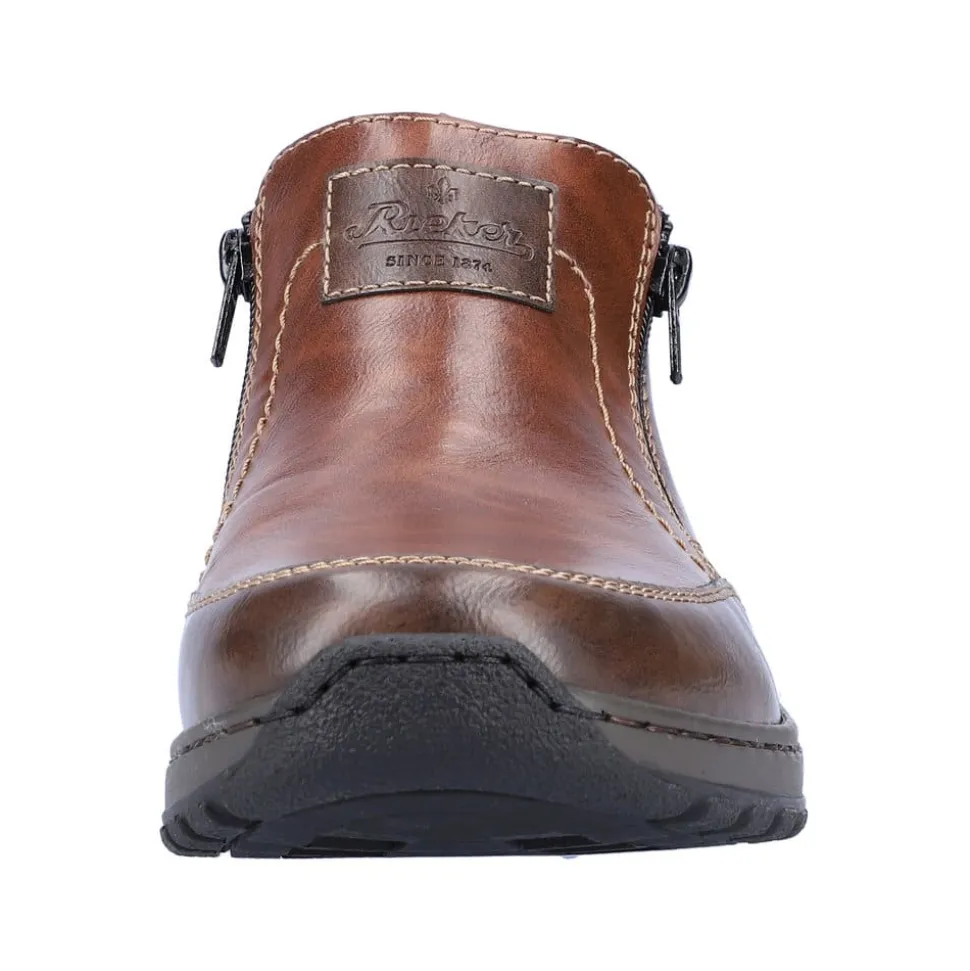 Rieker støvle i brun til herre. Nyd denne behagelige, lette og fleksible ankelstøvle med en stødabsorberende sål og ekstra plads i tåområdet for øget komfort. Støvlen har en smidig, autentisk overflade og praktiske lynlåse på begge sider, hvilket gør den nem at tage på og af. Dette er en tidløs herrestøvle fra Rieker, der passer til enhver lejlighed. Støvlen er foret indvendigt.