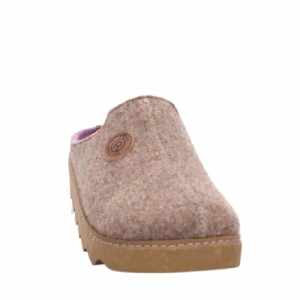 Rohde Easys N°35 hjemmesko til dame i beige. Glid ind i ren komfort med disse hjemmesko, der omslutter dine fødder med blødhed og varme fra top til tå. Fremstillet med en overdel og udtagelig indersål i filt, er disse clogs både åndbare og behagelige, hvilket sikrer et optimalt fodklima. Den lette og fleksible PU-sål i korkoptik tilbyder fremragende stødabsorbering og er skridsikker, hvilket gør dem ideelle til daglig brug. Filtoverdelen i to farver er ikke kun varm og stilfuld, men også vandafvisende, hvilket gør skoen ekstra praktisk. Med en bredde i G-pasform får du både komfort og perfekt støtte til dine fødder hele dagen.