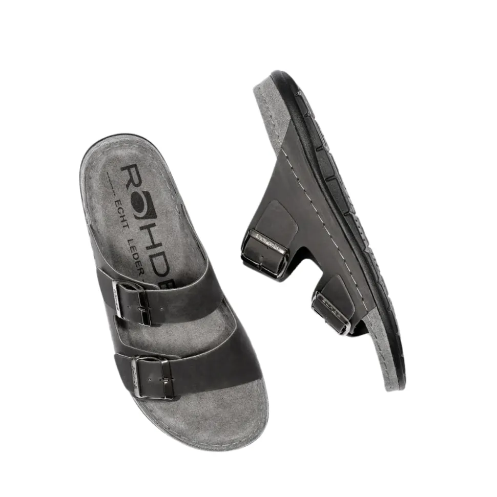 Rohde Easys N°42 sandal i grå til herre er designet til at give ultimativ komfort. Memory-fodsengen er særligt blød og former sig efter din fod, hvilket sikrer behagelig støtte hele dagen. Justerbare spænder gør det muligt at tilpasse pasformen, mens overdelen i naturlæder med sin varierende struktur skaber et unikt look, der gør hver sandal unik. Sandalen er fremstillet med læder af høj kvalitet i brugt look, som er både holdbart og naturligt. Indersålen er lavet af ruskind, som er åndbar og robust, mens sålen i PU giver fremragende støddæmpning, er let og skridsikker, og ikke efterlader mærker. Memory-fodsengen med sit lette memory-gel-indlæg støtter naturlig bevægelse, fordeler trykket og aflaster foden. Med sin G-pasform byder denne sandal på ekstra komfort og en god pasform.