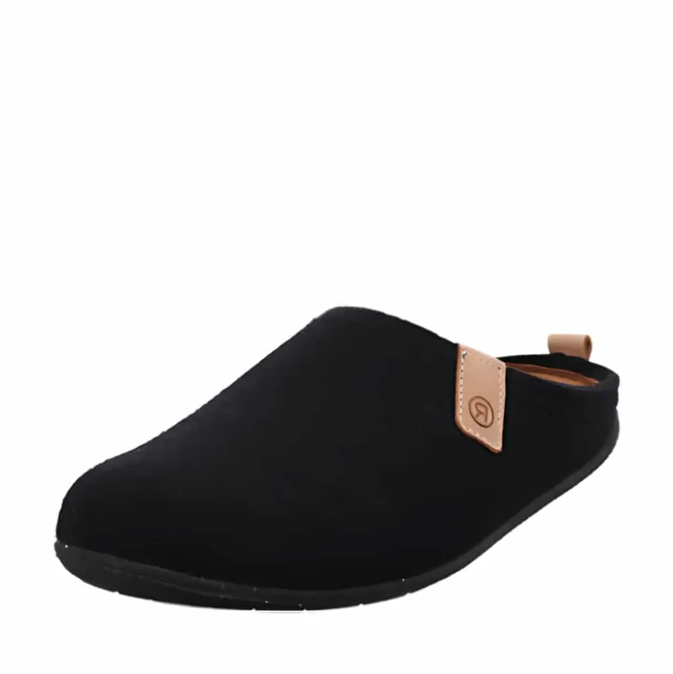 Rohde Greenys N°35 hjemmesko i sort til herre. Denne Rohde Greenys N°35 herre hjemmesko i sort er det perfekte valg for dig, der ønsker både komfort og bæredygtighed. Med en delvist genanvendt gummisål og en blød, udskiftelig læder indersål, vil dine fødder nyde maksimal komfort ved hvert skridt. Det bæredygtige filt materiale, som består af 50% genanvendt uld, gør denne hjemmesko til et ansvarligt valg, du kan have glæde af i lang tid. Den lette og lydløse sål med skridsikker gummibund giver sikkerhed og komfort i hverdagen.