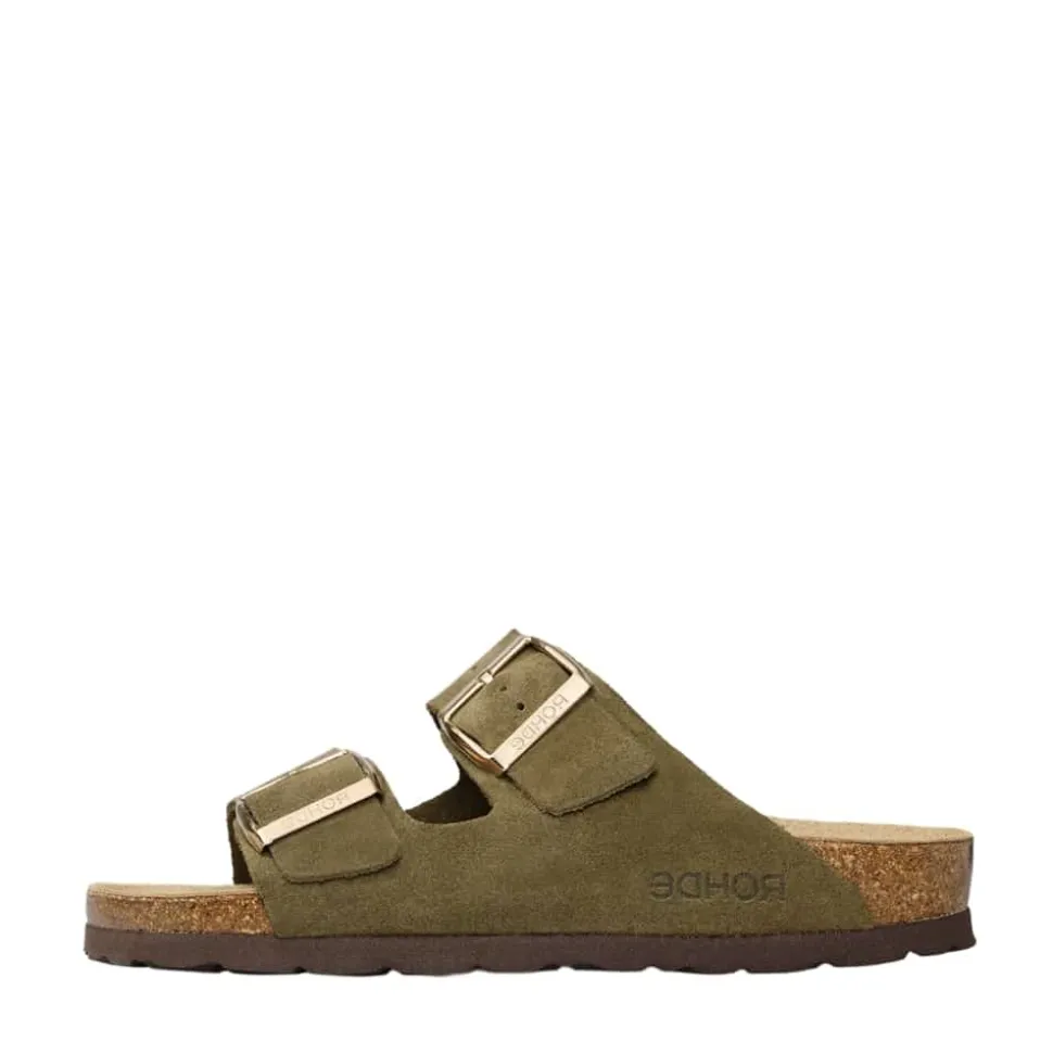 Rohde Sunnys N°12 sandal til dame i khaki. Denne klassiske sandal i en moderne mørkegrøn farve giver dit outfit et stilfuldt løft. Overdelen er lavet af 100 % læder og har to justerbare spænder, som sikrer en god og tilpasset pasform. Indersålen i blødt ruskind og den rummelige bredde G giver dig komfort hele dagen. Ydersålen er solid og mønstret for ekstra stabilitet og skridsikkerhed.