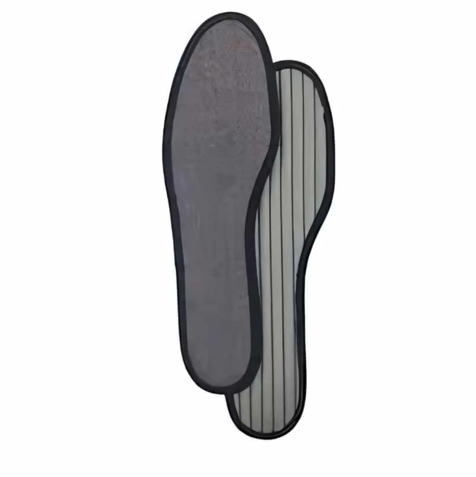 Frotte indlægssåler i grå. Frotté Indlægssål til herresko og støvler. En kombination af blød bomuld med antibakterielle egenskaber og et støttende lag af latex. Perfekt til brug med bare fødder og nem at vedligeholde, da de kan vaskes ved 30°C. Hver pakke indeholder 2 indlægssåler.