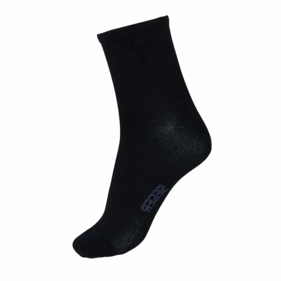 Seger Bamboo strømper i sort. Disse lækre unisex bambusstrømper er det perfekte valg for dig, der ønsker både komfort og kvalitet. De er naturligt bløde og behagelige mod huden, hvilket gør dem ideelle til hverdagsbrug. Takket være bambusfibrenes åndbare egenskaber, sikrer sokkerne god luftcirkulation, så dine fødder holdes kølige og tørre hele dagen. Bambusmaterialet absorberer effektivt fugt, hvilket hjælper med at forebygge fodlugt og bakterievækst. Desuden er bambussokkerne slidstærke og modstandsdygtige over for slidtage, så de holder længere. Da bambus er naturligt allergivenligt, er disse sokker også velegnede for personer med følsom hud eller allergi over for andre materialer.