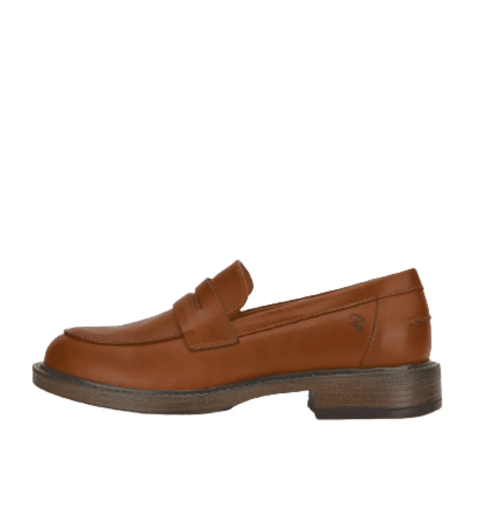 Shoedesign Copenhagen Loretta Loafers i camel til dame. Lækker loafers i høj skindkvalitet fra Shoedesign Copenhagen, der giver dine fødder en blød og super behagelig pasform. Skoen har et stilrent og tidsløst moderne look i en flot camel/brun farve, der kan styles til alt. Skoen har en fleksibel og blød bund, så du kan holde til at have den på hele dagen lang.