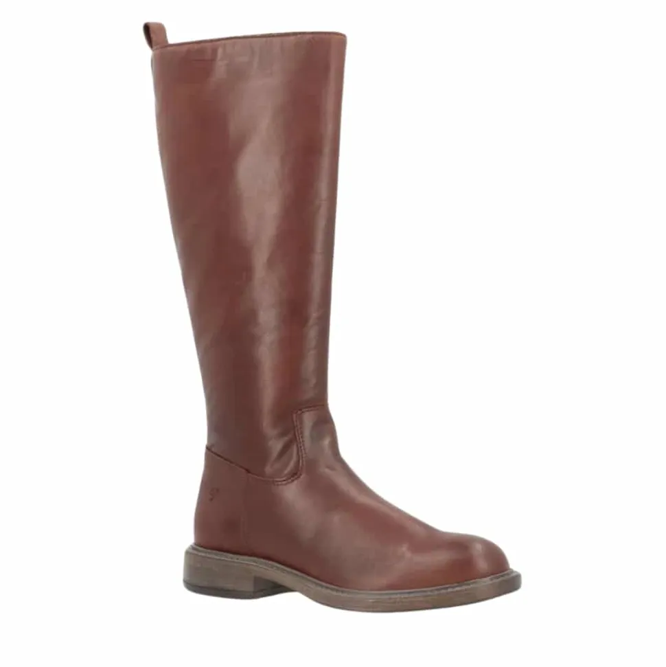 Shoedesign Copenhagen Montana lang støvle til dame i mørkebrun. Denne stilrene og moderne støvle er det perfekte valg, hvis du ønsker en elegant støvle med god komfort. Støvlen er lavet af 100% skind og har en praktisk lynlås på indersiden, der gør den nem at tage på og af. Den lille elastik i skaftet sikrer en behagelig pasform, uden at gå på kompromis med det enkle design. Ydersålen har et godt mønster, som giver ekstra skridsikkerhed, så støvlen er både trendy og funktionel.