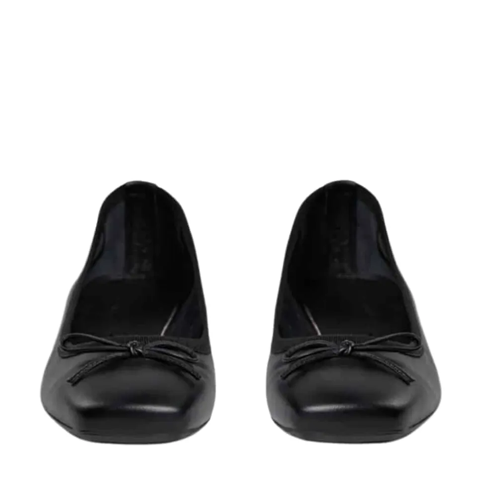 Sofie Schnoor ballerinasko til dame i sort. Giv dit outfit et feminint twist med denne smukke sorte ballerinasko. Den fine sløjfe over vristen og den firkantede snude tilføjer et moderne og elegant udtryk. Fremstillet i 100% skind for optimal komfort og holdbarhed, mens gummisålen sikrer et stabilt og behageligt skridt dagen lang.