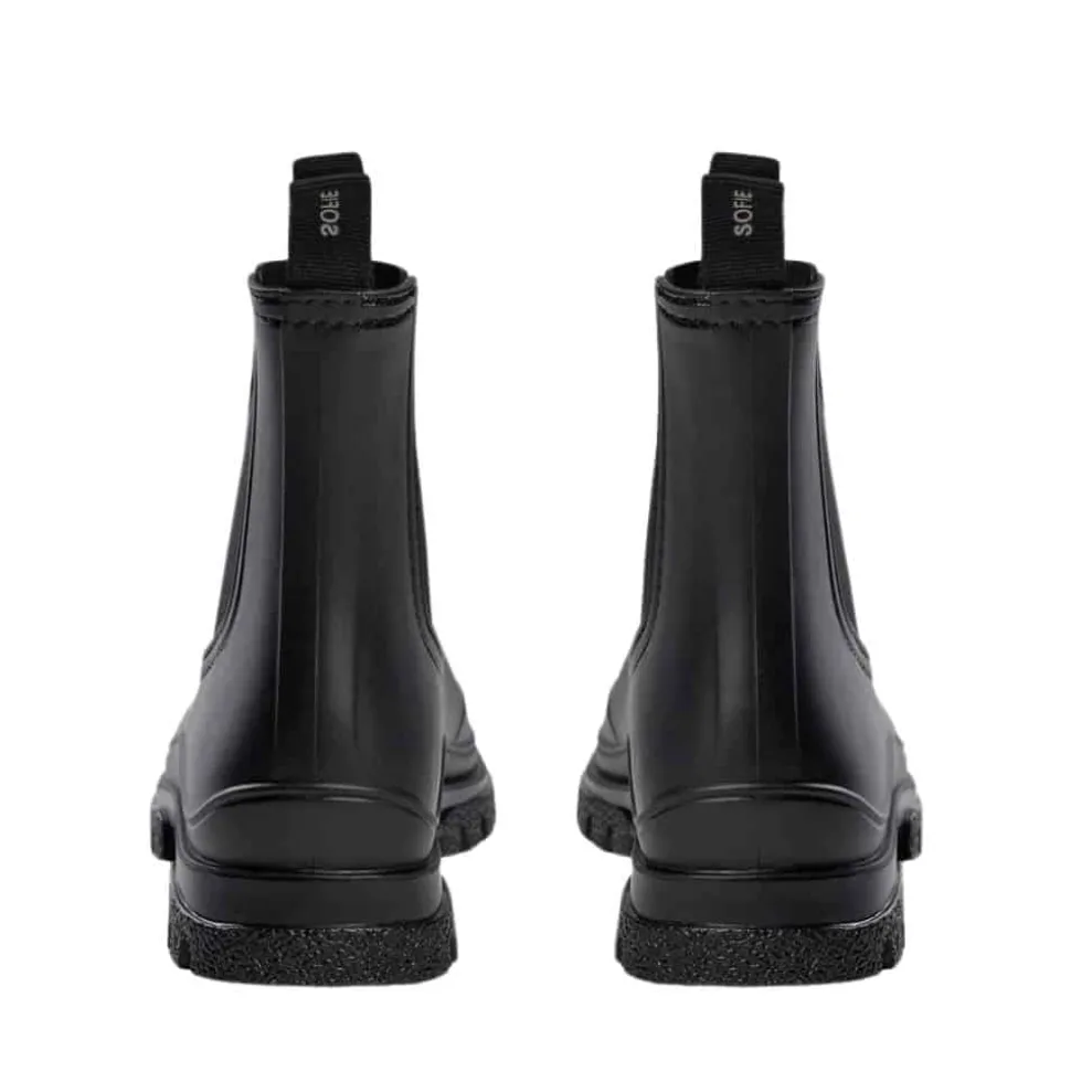 Sofie Schnoor gummistøvle til dame i sort. En fremragende og moderne gummistøvle i en tidløs farve, der udstråler elegance, med fine detaljer. Udstyret med elastik i begge sider, hvilket gør dem lette at tage af og på. Støvlen har desuden en robust sål med et mønster, der sikrer bedre greb og stabilitet.