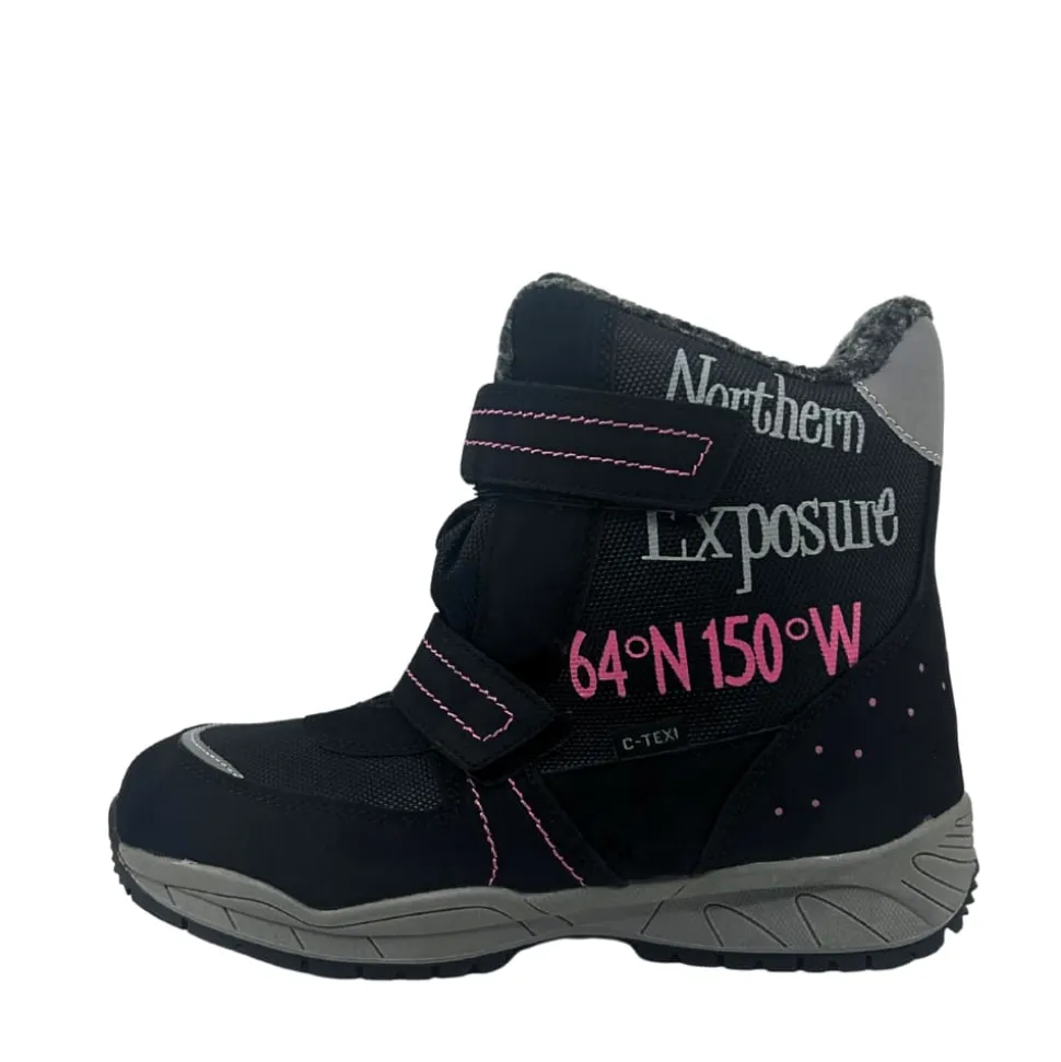 Sprox støvle til børn i sort. Komfortabel vinterstøvle til store børn i sort med smarte detaljer på siden, der giver et smart look. Støvlen har velcroremme foran der giver en justerbar pasform og gør det let at komme i og af støvlen. Indvendigt bliver du mødt af en varm foring der holder dine fødder lune, mens C-Texi membranen gør støvlen kraftig vandafvisende. Den solide ydersål med et godt mønster giver støtte og øget skridsikkerhed.