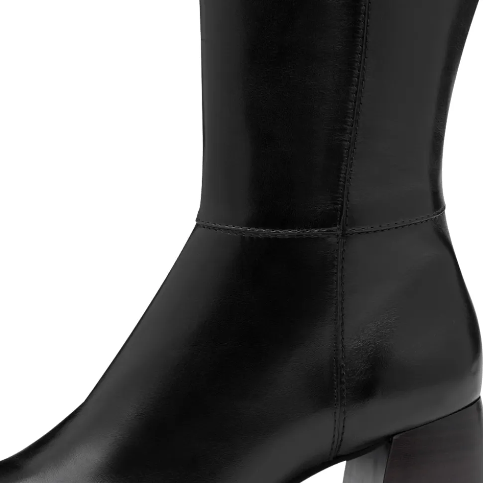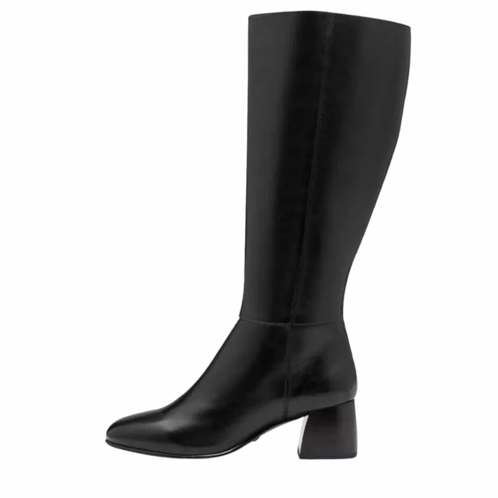 Tamaris lang støvle til dame i sort. Denne klassiske sorte støvle med langt skaft kombinerer enkelthed med et moderne udtryk. Overdelen er fremstillet i blødt skind og den funktionelle lynlås på indersiden samt elastikken sikrer en fleksibel pasform og gør støvlen let at tage af og på. Indvendigt er den udstyret med en blød indersål med Touch It teknologi, som former sig efter foden. Blokhælen på ca 6 cm er designet med Anti Slide og Anti Shock, der giver øget komfort og skridsikkerhed.