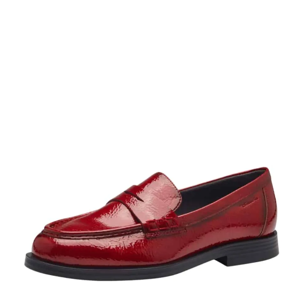 Tamaris loafers til dame i rød lak. Stilfulde loafers i en smuk rød farve med en skinnende lakoverdel, der tilføjer et moderne touch. Skoen er nem at tage på og pyntes med en elegant detalje over forfoden. Den bløde indersål med Touch-It teknologi former sig efter foden og sikrer optimal komfort. Den lille hæl giver et sofistikeret look, mens den mønstrede ydersål forbedrer skridsikkerheden.