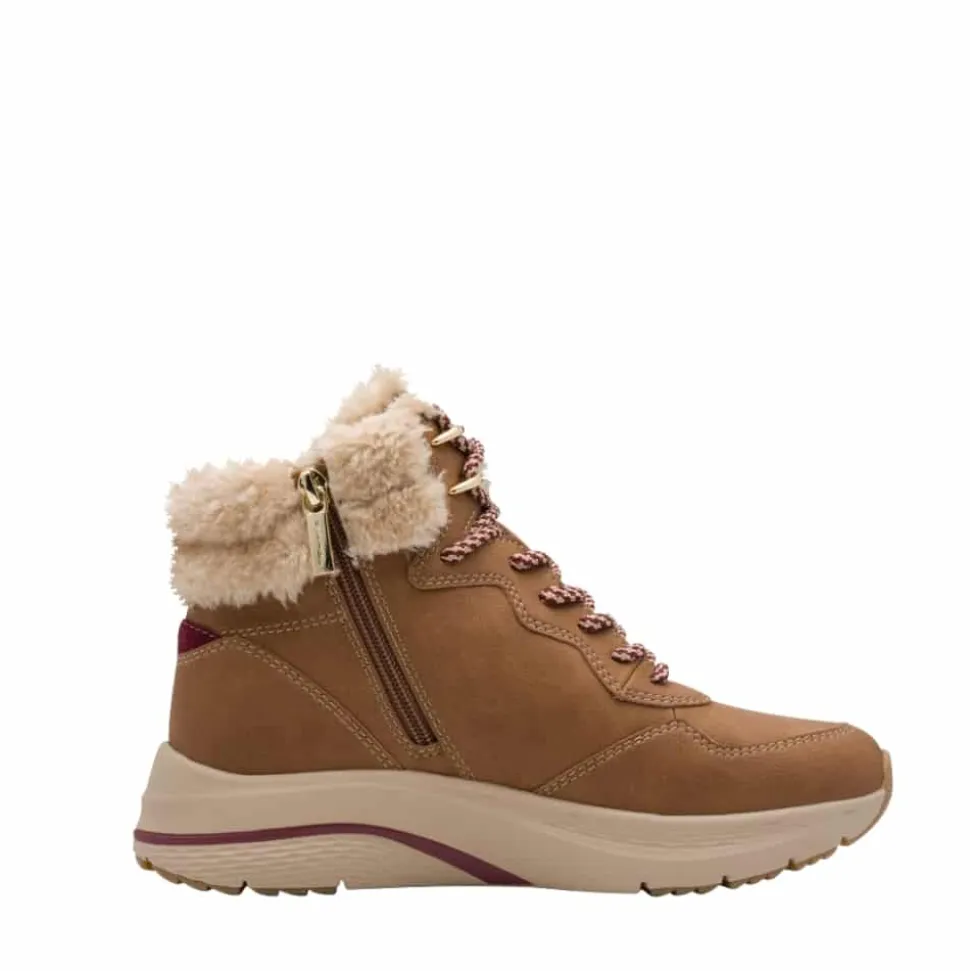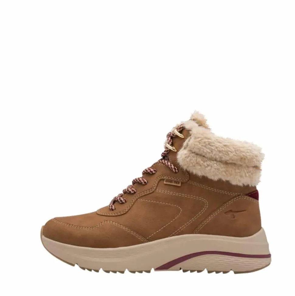 Tamaris støvle til dame i brun. Moderne vinterstøvle til dame i brun med smarte detaljer, der giver et stilfuldt look. Med snørebånd foran får du mulighed for en justerbar pasform, mens lynlåsen på indersiden gør det nemt at tage støvlen af og på. Indvendigt sørger den varme foring og den bløde udtagelige thermo-indersål for at holde fødderne varme og komfortable hele dagen. Støvlen er udstyret med DUO-Tex, som gør den kraftigt vandafvisende. Den chunky ydersål med et godt mønster giver både øget støtte og skridsikkerhed.
