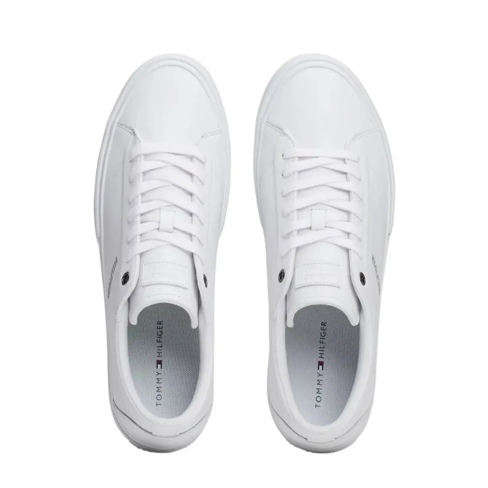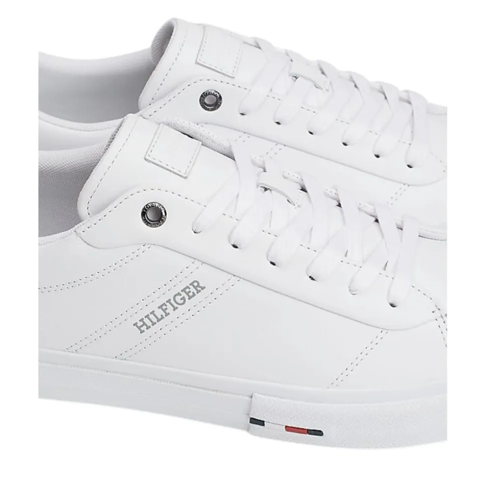 Tommy Hilfiger Vulc Street sneakers til herre i hvid. Giv dit outfit et løft med disse lækre sneakers med en blød skindoverdel, der er ideelle til alle årstider. Overdelen af skind øger kvaliteten samtidig med at det giver et stilfuldt udseende. Indvendigt har skoen en blød og udtagelig sål, for optimal komfort dagen lang. De markerede syninger sammen med de fine Tommy Hilfiger logo’er, giver skoen et ekstra strejf af stil. Ydersålen er lavet af slidstærkt gummi og gør dem både funktionelle og komfortable.