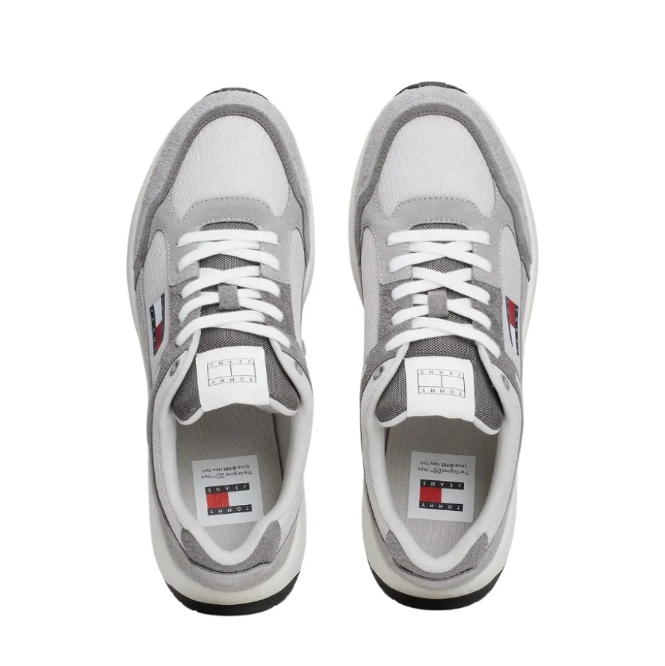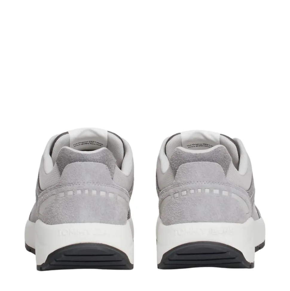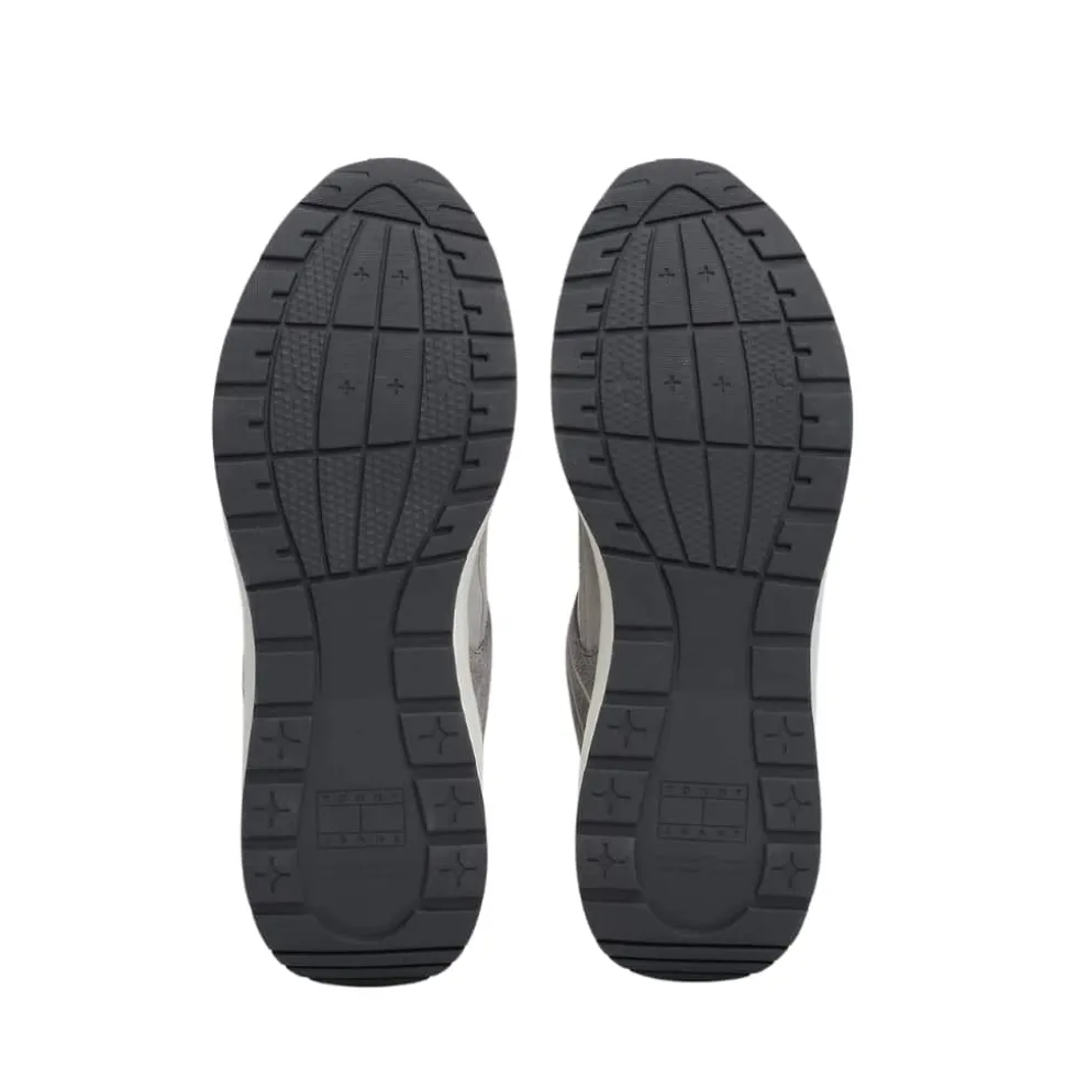 Tommy Jeans TJM Runner sneakers til herre i grå. Denne sneakers er lavet med ægte ruskindsdetaljer, som giver et stilfuldt og moderne udtryk. Den er designet i en flot farvekombination, og de små Tommy Jeans-detaljer tilføjer ekstra et ekstra strejf af stil. Indvendigt har skoen en blød, udtagelig sål, som sikrer behagelig komfort hele dagen. Skoen har snørebånd foran, der kan justere efter dine behov, hvilket bidrager til en god pasform. Ydersålen er lavet af gummi, hvilket giver dig god støtte og et sikkert fodfæste, uanset hvor du går.